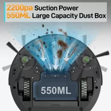 • Powerful Suction: 2200Pa suction for effective cleaning of dust, crumbs, and pet hair.