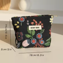 This Small Floral Cosmetic Bag is the perfect mix of style and convenience for women on the go. Designed in a charming plant-inspired pattern, this compact bag is ideal for keeping your daily essentials organized. Crafted from high-quality polyester, it’s durable yet lightweight, making it easy to slip into any purse or backpack. Whether you’re using it to store sanitary napkins, keys, coins, or cards, this versatile bag keeps everything neatly tucked away. Its minimalist design and portable size make it the perfect accessory for those who appreciate both style and function.