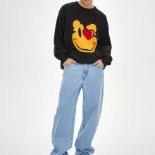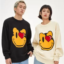 Stay cozy and stylish all season long with this eye-catching smiling face cartoon jacquard sweater. Perfect for autumn and spring, this sweater offers both comfort and fun. The playful design, featuring an embroidered smiling face, brings an easygoing vibe to your everyday wardrobe. Its soft, thick acrylic fabric ensures warmth during cooler weather, making it the ideal piece for casual outings, strolls in the park, or just relaxing with friends.