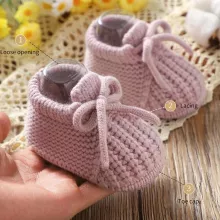 Perfect for all seasons, these knitted baby shoes are made from premium fabric that’s kind to sensitive skin. The lightweight yarn sole is soft enough for newborns while still providing essential grip as they start to explore the world around them. Whether for a stroll, a playdate, or just lounging at home, these shoes add a touch of timeless charm to any outfit.