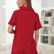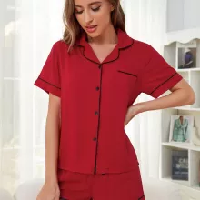 This pajama set stands out for its timeless design and premium fabric. The smooth texture and breathable material help you unwind after a long day, ensuring you wake up refreshed. Its relaxed fit makes it suitable for all body types, and the adjustable drawstring on the shorts offers a customizable fit. The solid color adds a touch of elegance, making it a versatile addition to your sleepwear collection.