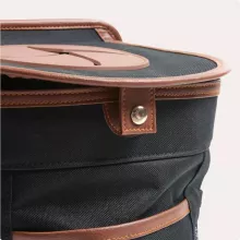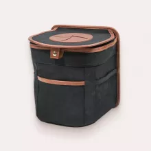 A well-crafted product with an easy-to-use magnetic button closure on the lid. Keeps everything tidy inside!