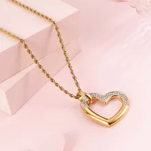 Elevate your jewelry collection with this stunning stainless steel heart pendant necklace. Perfectly designed for both women and men, this trendy accessory combines elegance and versatility. The beautiful heart-shaped pendant is adorned with sparkling rhinestones, making it a standout piece that captures attention and complements any outfit. Whether you’re dressing up for a party, celebrating a special occasion, or simply adding charm to your daily look, this necklace is the perfect choice.