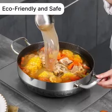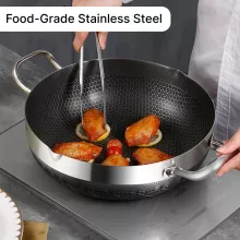What sets this frying pan apart from others on the market is its premium stainless steel construction combined with the unique honeycomb non-stick bottom. This ensures even heat distribution while preventing food from sticking, offering the convenience of non-stick cookware without compromising the durability of stainless steel. Its eco-friendly design, combined with compatibility for both gas and induction stoves, makes it a versatile, long-lasting addition to any kitchen.