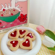 - Design: Heart-shaped sandwich biscuit with intricate detailing.