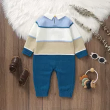 This knit romper is the perfect choice for your baby during the autumn season. Whether you’re heading out for a walk in the park or spending time at home, the long sleeves and breathable material ensure your baby stays warm and comfortable. The stylish striped design makes it an easy go-to for any casual occasion, while the turn-down collar adds a touch of sophistication. It’s a versatile piece that you’ll want to dress your little one in again and again!