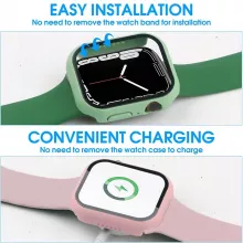 Made from tempered glass and durable PC plastic, this Apple Watch cover offers unmatched protection without compromising on style. The tempered glass screen protector is highly resistant to scratches and cracks, while the PC bumper frame guards the edges of your watch, ensuring all-around protection. With its matte finish, the case adds a modern touch while remaining lightweight and comfortable to wear.