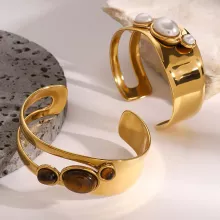 This bracelet is crafted from high-quality stainless steel with an 18K PVD gold plating, ensuring durability and long-lasting shine. The combination of irregular freshwater pearls and Tiger Eye stones creates a stacked design that is both modern and timeless. Each element is carefully selected to offer a harmonious balance of natural textures and luxurious materials. The waterproof and anti-scratch finish ensures it will remain as stunning as the day you first wear it.