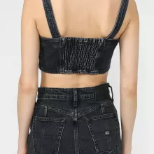 Made from 98% cotton with a touch of elastane (2%), this top is soft, breathable, and has just the right amount of stretch to fit perfectly. The simple black color and plain design make it a versatile piece that pairs beautifully with any bottom, from shorts to skirts and jeans. The straps add a delicate touch, creating a feminine and flattering silhouette, while the slim fit ensures you can move freely without feeling restricted.