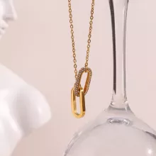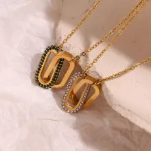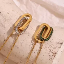 What truly sets this necklace apart is its combination of geometric design and vibrant rhinestone accents. The paperclip link style offers a contemporary twist on a classic design, while the green and white rhinestones add an unexpected pop of color, making it a truly unique piece. Crafted from durable and tarnish-resistant 316L stainless steel, this necklace will keep its stunning appearance, even with daily wear. It’s also hypoallergenic, ensuring that you can wear it with comfort, no matter how sensitive your skin may be.