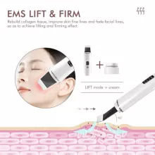 The Ultrasonic EMS Skin Scrubber goes beyond simple cleansing—it’s designed to enhance your entire skincare routine. With four unique modes (Peel, Lift, Ion+, Ion-), this powerful tool delivers professional-level skincare in the comfort of your home. It gently removes dead skin cells and impurities while promoting collagen production and nutrient absorption, leaving your skin fresh, smooth, and firm.