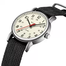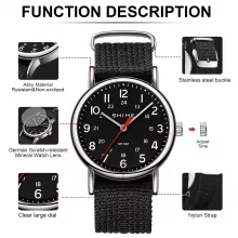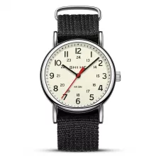 The watch’s quartz movement ensures precise timekeeping, while the sturdy alloy case and 3-bar water resistance provide reliability even in tougher environments. Its comfortable nylon strap is both lightweight and breathable, making it ideal for all-day wear. Featuring a simple buckle clasp, this wristwatch is easy to secure and adjust for the perfect fit. The bold, minimalist design and easy-read dial make it a practical choice for those who want to stay on top of their schedule without sacrificing style.