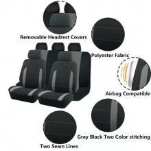 Crafted from durable polyester, these seat covers are made to last through every season. The breathable fabric ensures comfort in both warm and cold climates, while also being easy to clean. The material provides a snug fit over your car seats, protecting them from spills, dirt, pet hair, and general wear. These seat covers are designed to be a practical addition to your vehicle, offering both protection and comfort.