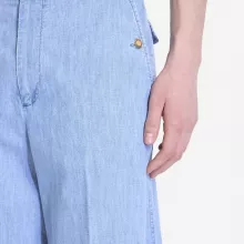 Elevate your wardrobe with Valentino’s High-Waisted Wide-Leg Denim Pants. With their chic silhouette, luxurious details, and unmatched comfort, they are designed for those who seek style that makes a statement. Shop now and make these versatile pants your new go-to for effortless style and sophistication.