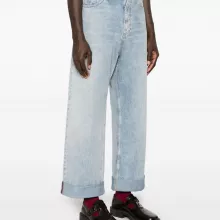 These jeans stand out because they seamlessly combine practical features with high-end design. The baggy, relaxed fit gives you the freedom to move, while the modern details like the turn-up hem and leather patch elevate them into a fashion-forward must-have. Plus, the durable cotton fabric ensures these jeans will be a reliable addition to your wardrobe for years to come.