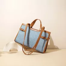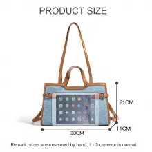 Elevate your everyday fashion with this versatile denim shoulder tote bag. Designed for the modern woman, this bag combines a laid-back aesthetic with exceptional functionality. Crafted from durable denim fabric and accented with split leather, this tote offers a timeless appeal that complements a variety of outfits. Its spacious design and practical features make it perfect for work, shopping, or casual outings.