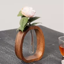 Elegant Walnut Wood and Glass Flower Vase for Stylish Decor