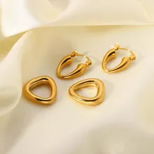 Elevate your accessory collection with these stunning 18K Gold Plated Stainless Steel Geometric Hoop Earrings. Designed for the modern woman, these earrings combine elegance, durability, and versatility in one striking piece. The unique dual-use design features a trendy geometric triangle drop, allowing you to effortlessly transition from casual chic to glamorous evening looks. Hypoallergenic and tarnish-free, these earrings are perfect for daily wear or as a thoughtful gift for someone special.