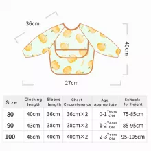 This baby bib stands out for its combination of functionality and style. The waterproof polyester material ensures your baby stays dry and clean, while the food pocket catches crumbs and spills to minimize clean-up. The long sleeves offer full protection, making it ideal for both feeding and creative activities. With its fun cartoon patterns and unisex design, this bib is perfect for both boys and girls. Plus, its lightweight, breathable material ensures your baby stays comfortable during use.