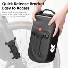 What sets this bag apart is its thoughtful combination of practicality and style. The waterproof material ensures your essentials remain dry, while the compact design fits seamlessly on any bike. The quick-release feature lets you easily transition between cycling and carrying your gear by hand, making it a highly versatile accessory for cyclists who value convenience and durability.