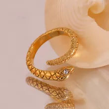 This snake ring combines elegance with a bold, vintage charm that appeals to trendsetters and timeless style lovers alike. The hypoallergenic and waterproof design ensures it’s suitable for any skin type and can be worn in any setting, from beach days to parties. Not only does the 18K gold-plated finish bring out the intricate details of the snake shape, but it also provides lasting durability so you can enjoy its brilliance for years to come. Its unique design and quality craftsmanship make it a stunning gift or a wonderful treat for yourself.