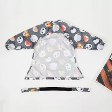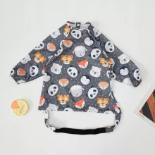 With its full-sleeve coverage and waterproof fabric, this bib offers superior protection against spills, stains, and food messes. The adjustable neckline and secure back closure ensure a snug fit, while the pocket at the bottom catches crumbs and drips, reducing cleanup time. Its lightweight and breathable material is easy to clean and quick to dry, making it perfect for busy parents and active toddlers. Featuring fun, all-over prints, this bib is as stylish as it is functional.
