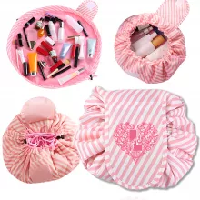 This cosmetic bag is crafted from durable, waterproof nylon, ensuring your items stay safe and dry. The barrel-shaped design unfolds into a flat 20-inch diameter for easy access to your essentials, making it ideal for busy mornings or travel. The bag includes a practical small pocket for securing smaller items like napkins or jewelry, ensuring everything has its place. With a weight of only 0.08 kg, it’s ultra-light yet spacious enough to accommodate all your necessities.