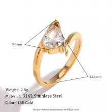 Step into a world of elegance with the exquisite wing-shaped white zircon water droplet ring. Designed to capture the beauty of delicate wings in flight, this stunning ring combines the brilliance of white zircon with the luxury of 18K gold plating. Crafted from durable 316L stainless steel, this piece is not only a statement of style but also one of lasting quality.