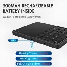 Perfect for professionals, students, and anyone who needs quick number entry or precise navigation, this Bluetooth numeric keypad with touchpad is more than just a tool—it’s a game changer. Its dual connectivity modes provide flexibility for all your devices, and the automatic system detection removes the hassle of setup. The large touchpad enhances user experience by making control smooth and intuitive, while the rechargeable lithium battery ensures you can work without interruptions.