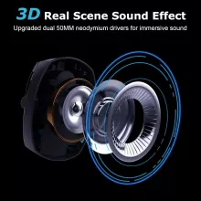 Immerse yourself fully into your games with the dual-chamber 50mm drivers that deliver rich, 3D stereo sound. Hear every footstep, explosion, and ambient sound in perfect detail. The 2.4G wireless connection ensures a lossless connection, so you never miss a beat during critical moments.