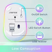 Whether you’re a student, a professional, or a gamer, this wireless mouse offers unmatched convenience and style. The quiet clicks, comfortable grip, and colorful LED lights make it special, while its portability ensures you can take it anywhere. With adjustable DPI settings, it adapts to your pace—whether you’re scrolling through documents or engaging in precision gaming. Plus, with a long-lasting rechargeable battery and automatic sleep mode, you never have to worry about constantly charging it.