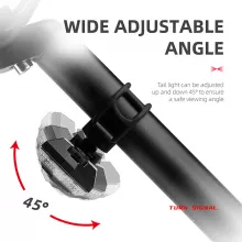 Transform your cycling experience with the Wireless Remote Turn Signal Bicycle Rear Light. This advanced taillight combines safety and convenience, ensuring you remain visible on the road, day or night. With its wireless remote control and USB rechargeable design, this taillight is the perfect accessory for cycling enthusiasts who value safety, practicality, and style. Its innovative features, including turn signals and a flashing beep function, make it a must-have for your bike.