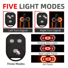 - Wireless Remote Control: Effortlessly control your rear light settings with the wireless remote, conveniently mounted on your handlebars.