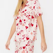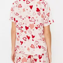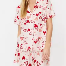 Add a playful touch to your loungewear collection with this charming Women’s Heart Print Pajama Set. Designed for both comfort and elegance, this two-piece set features a button-up short sleeve top with a lapel neck and matching shorts, making it perfect for cozy nights and relaxed mornings. Whether you’re unwinding after a long day or celebrating Valentine’s Day in style, this pajama set combines function and fashion effortlessly.