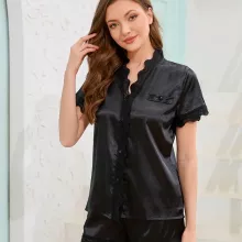 Indulge in the perfect blend of style, comfort, and sophistication with our Women’s Satin Lace Pajama Set. Designed for the modern woman who values both functionality and fashion, this two-piece sleepwear ensemble is an ideal choice for warm summer nights or casual lounging at home. Crafted from premium satin polyester, this set feels like a gentle caress against your skin, offering ultimate relaxation while exuding effortless elegance.