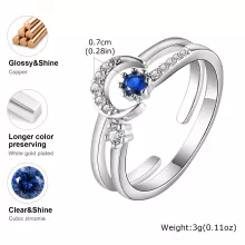 The rings are made from high-quality copper and finished with a durable vacuum 3-layer plating that ensures they retain their shine and resist fading over time. The open-ring design offers adjustability, making them a perfect fit for any finger size. The prong setting securely holds the zirconia stones, ensuring long-lasting brilliance. With their hypoallergenic properties, these rings are lead-free and nickel-free, making them safe for even the most sensitive skin.