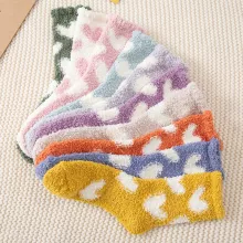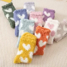 What sets these socks apart is their blend of comfort and style. The thick coral wool material keeps your feet warm without compromising breathability, while the heart print design adds a delightful and feminine touch. Their middle tube length provides just the right amount of coverage, making them ideal for chilly nights or as stylish floor socks for home.