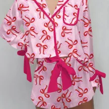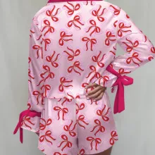 - Comfortable Fit: Relaxed fit with adjustable bow tie shorts for customizable comfort.