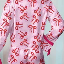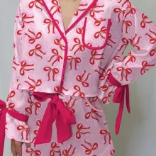 This pajama set stands out for its blend of style and functionality. The vibrant heart print brings a playful, youthful vibe, while the luxurious fabric ensures maximum comfort. The ruffle detailing adds a feminine touch, making it ideal for both casual lounging and special occasions like Valentine’s Day. Its adjustable fit ensures you feel as good as you look.