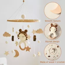 Transform your baby’s nursery into a serene haven with our Wooden Crib Mobile featuring adorable crochet dolls and a gentle music box. Designed to captivate your little one’s imagination, this delightful mobile is the perfect addition to any crib or bassinet. With its sturdy wooden construction and intricate cartoon-inspired details, this mobile effortlessly combines style and functionality. Whether you’re welcoming a newborn or gifting a loved one, this enchanting mobile promises to create cherished memories.