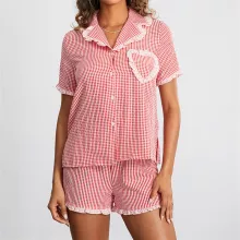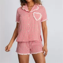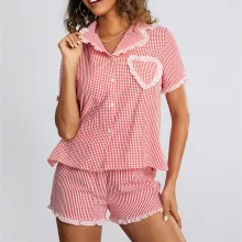 Relax in style with this dreamy Y2K Pink Plaid Pajama Set, designed for women who love a mix of vintage charm and modern comfort. Perfect for lounging at home, this 2-piece set features a short-sleeve lapel top and matching plaid shorts, exuding a sweet 90s vibe. Made from lightweight polyester, this set is ideal for summer nights or cozy mornings, giving you the perfect blend of softness and breathability. Whether you’re curling up with a book or sipping coffee, you’ll feel effortlessly chic and relaxed.