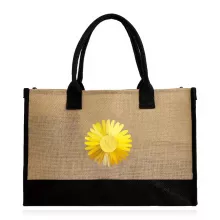 This yellow jute shopper bag is not only practical but also stylish enough to complement a variety of outfits and occasions. Take it with you to the farmer’s market, use it as a work tote, or bring it along for a picnic. The durable fabric ensures it can carry heavier loads, while the daisy print makes it a fun and eye-catching accessory.
